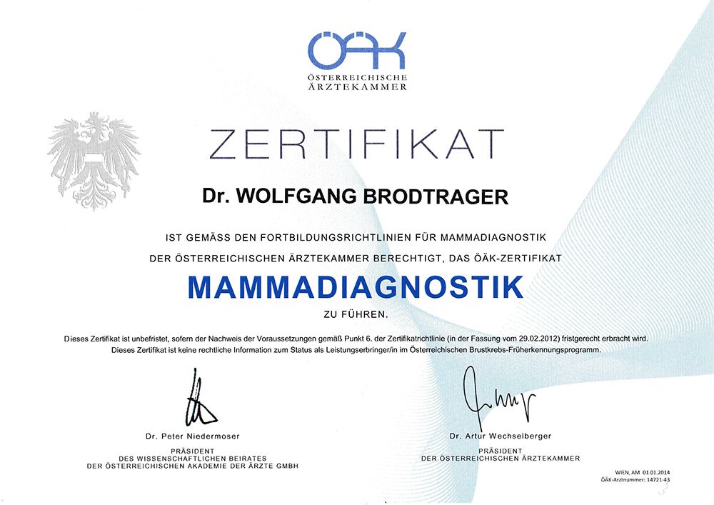 ZERTIFIZIERTES ZENTRUM FÜR MAMMOGRAPHIE - BRUSTKREBSVORSORGE - FRÜHERKENNUNG